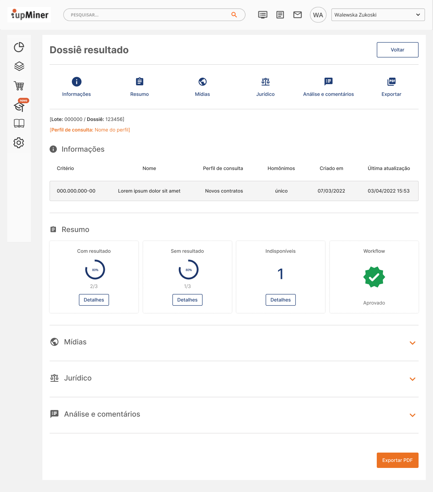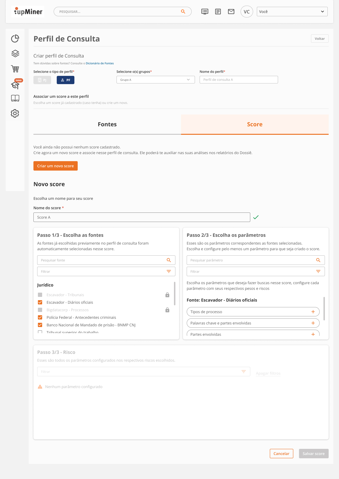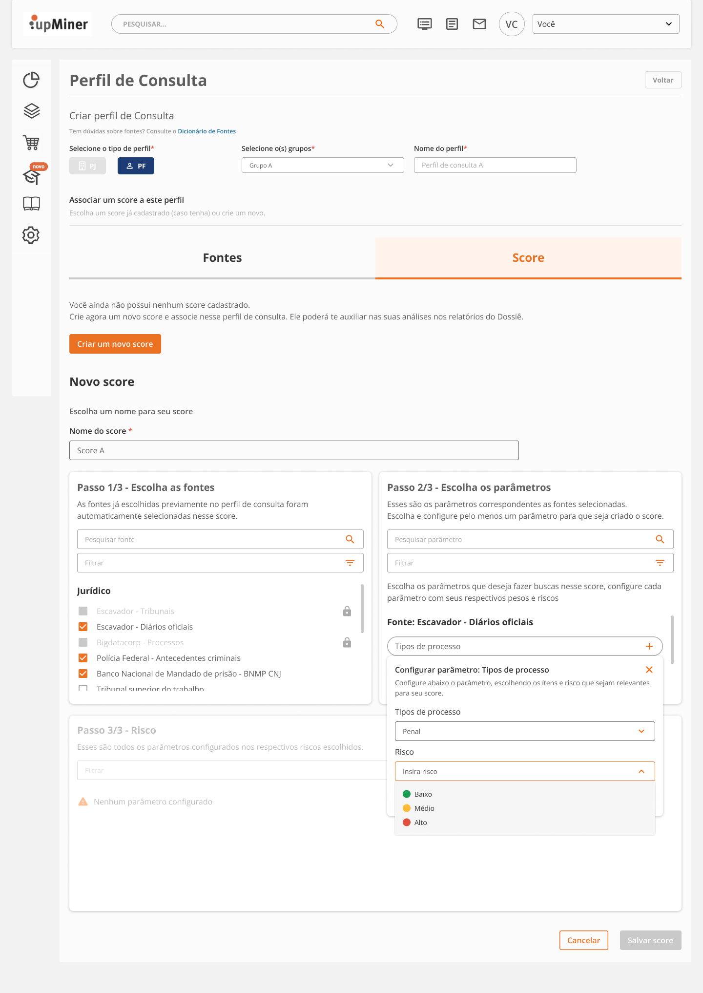 Risk Score is a feature that makes big and complex dossiers easier to understand. Users can set in advance which information and risk levels are important, and the system organizes the data to show risks already classified. This helps reduce bureaucracy and makes decisions faster.